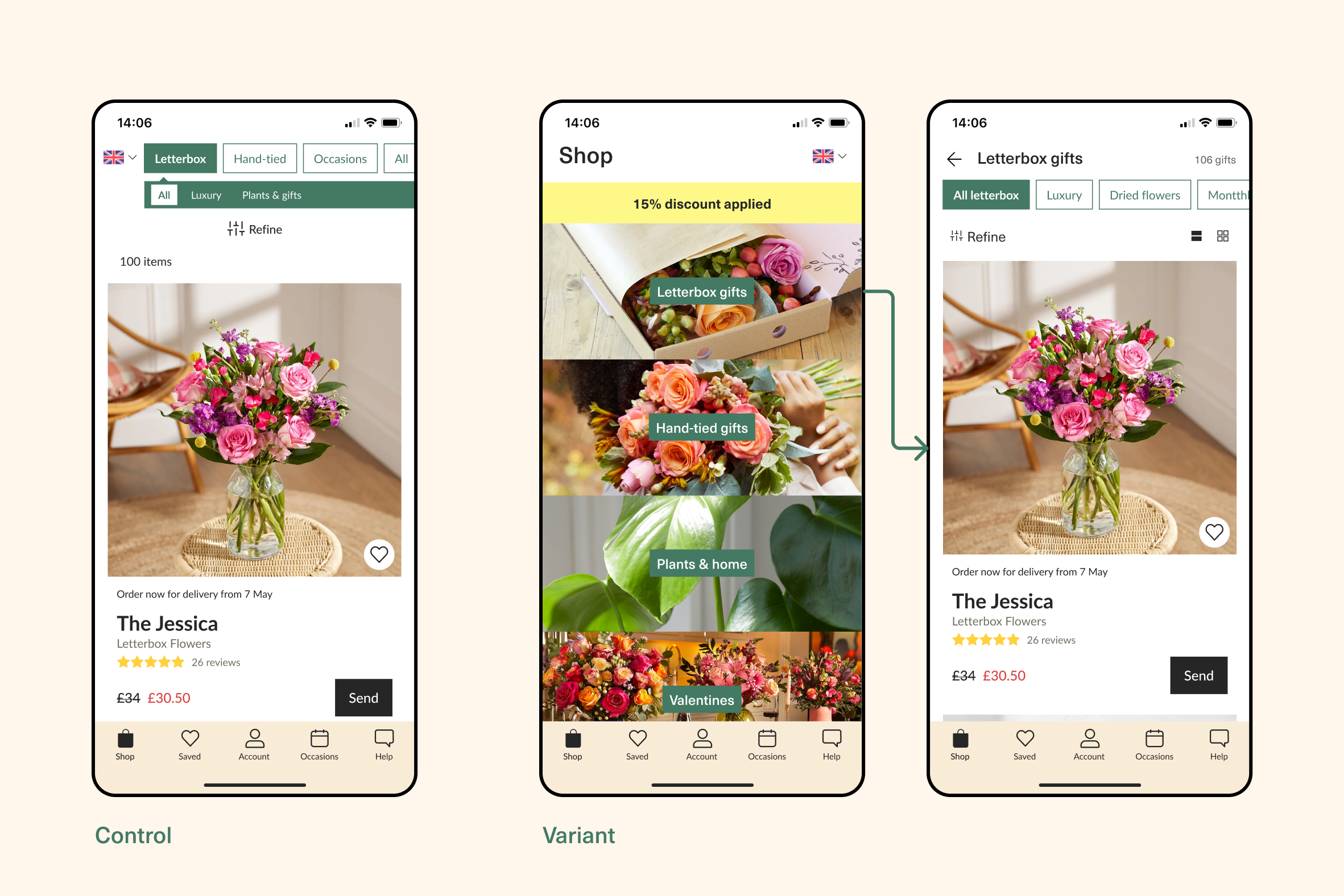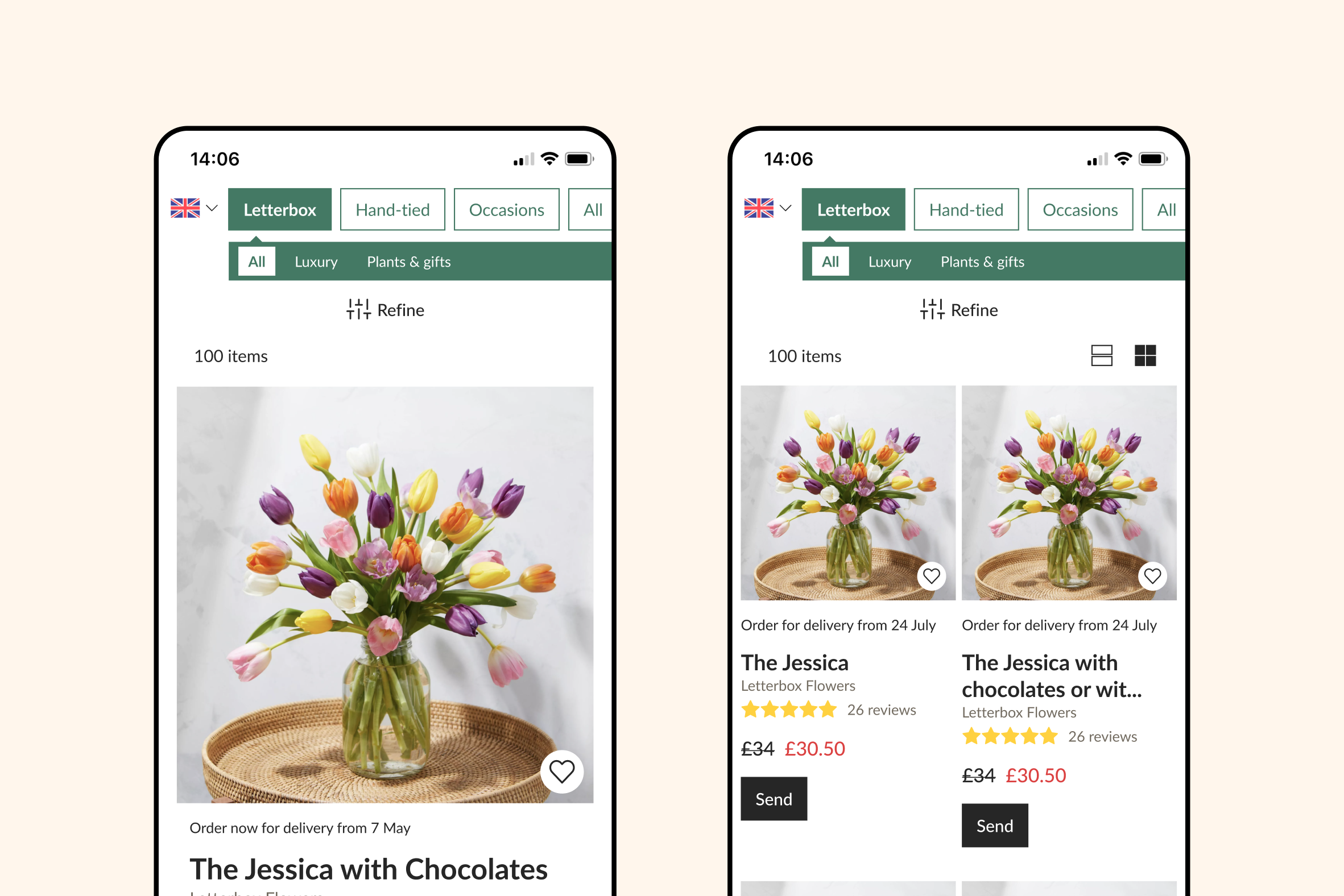 Bloom & Wild is the leading floral gifting destination, helping customers send meaningful gifts with ease. While the app had grown steadily, customer insight revealed difficulties with browsing the range. We needed to improve the discovery experience to make gifting simpler for users and more scalable for the business.