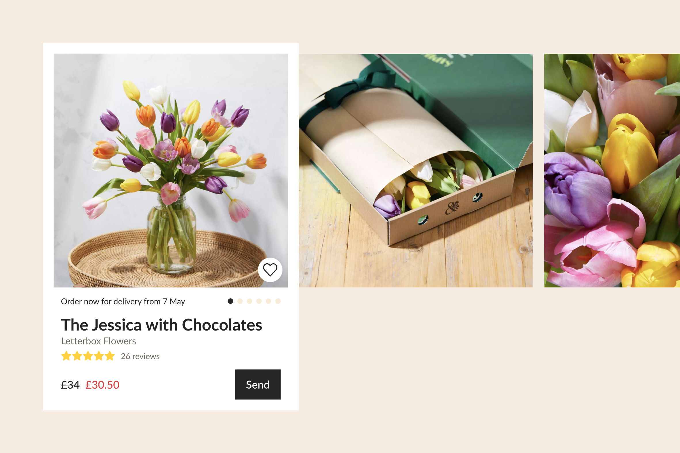 Since photography is our strongest conversion driver, we enabled image carousels within product cards to show more imagery and how gifts would arrive to build customer confidence. Result: significant increases in CPU and NPS.